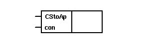 Villkorlig lagring av analogt värde på analog storhet (= parameter, in- eller utsignal) i godtyckligt lokalt objekt. Lokal betyder att målobjektet tillhör samma nod som CStoAp objektet. Villkorlig lagring syftar på con-ingången som förväntas vara kopplad. Villkorsingången kan med hjälp av Objekts Editorn fås att invertera insignalen. Idag kan emellertid den grafiska symbolen inte visa en inverterad con- ingång. Därför rekommenderas, då så erfordras, en explicit användning av Inv -objekt. Det är inte tillåtet att med funktion i C-program eller PLC program skriva i någon av ingångarna.Tips
